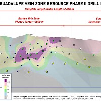 The Europa Vein Zone has an average width of mineralization at 3.1 m, and average grade of 358 g/t Ag, 0.5% Cu, 0.6% Pb, and 1.2% Zn, or 454 g/t AgEq. Significant mineralization was intersected in Hole AL25-135 which returned 5.85 m of 476 g/t AgEq including 0.70 m of 2,601 g/t AgEq (2,180 g/t Ag); and hole AL25-139 returned 2.40 m of 499 g/t AgEq including 0.50 m of 1,366 g/t AgEq (851 g/t Ag).
