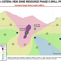| Cotera | 800 | 7.60 m @ 155 g/t Ag incl. 2.15 m @ 451 g/t Ag (AL19-035) |