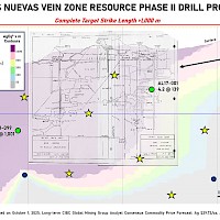 Minaurum has drilled 149 diamond core holes totaling 55,000 m on 19 of the 26 vein zones discovered at the Alamos silver project from 2017 - 2025.